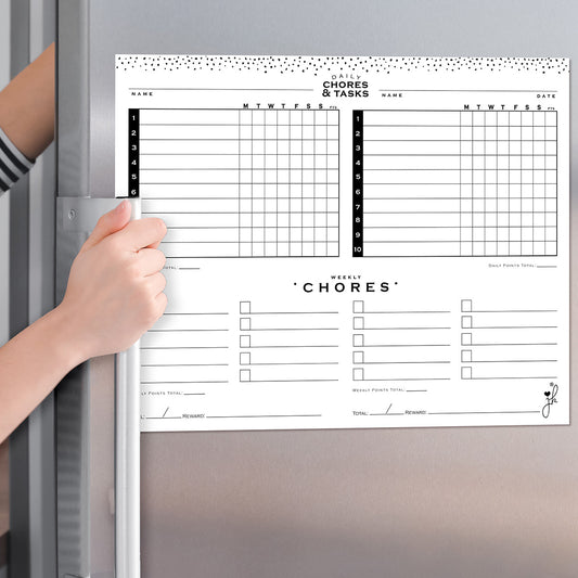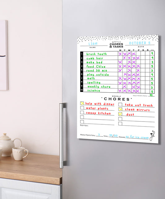 Meet your new secret weapon for a more organized and stress-free Back to School season - the Magnetic, Dry Erase Chore Chart from Jennakate. Designed with busy parents in mind, our charts are the perfect tool to help you and your family stay on top of daily chores and routines, creating a structure that eliminates nagging and chaos and brings peace to your home.