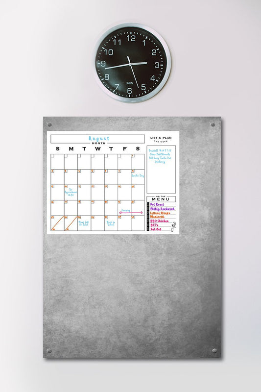 Magnetic Monthly Calendar Whiteboard with Menu - Dry Erase - Mid Mod